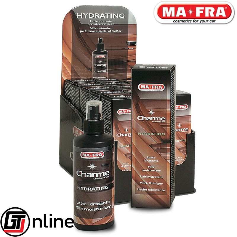 لوسیون مرطوب کننده چرم خودرو از کمپانی Mafra ایتالیا می باشد. این محصول مفرا با نام تجاری Charme Hydrating با حجم 150 میلی لیتر مناسب جهت جلوگیری از کهنگی و رنگ پریدگی چرم می باشد. این لوسیون مرطوب کننده چرم نگهدارنده براقیت و نرمی طبیعی چرم با اثربخشی سریع و کارایی راحت می باشد.